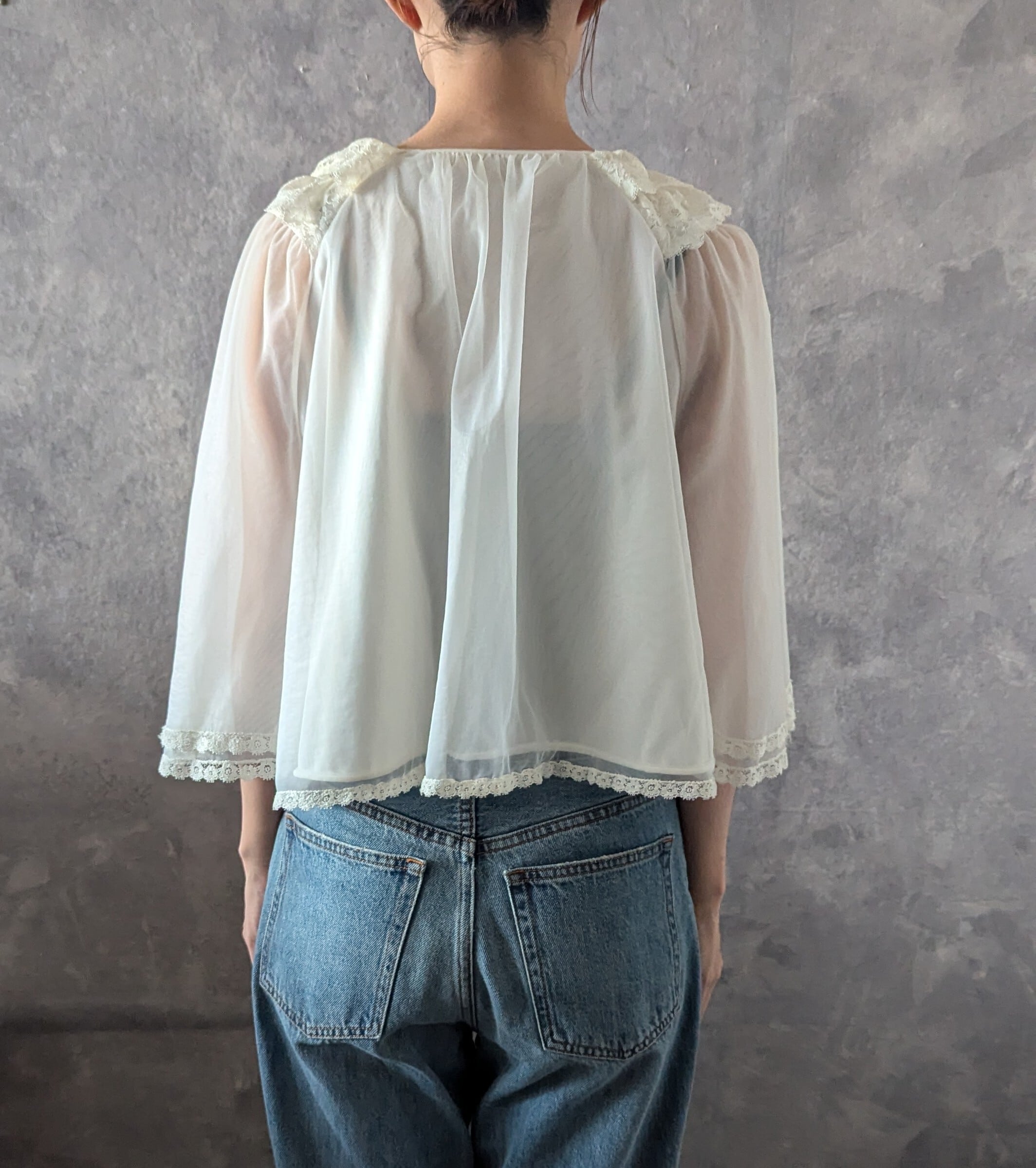 Sheer Blouse with Lace Ruffled Collar【古着】