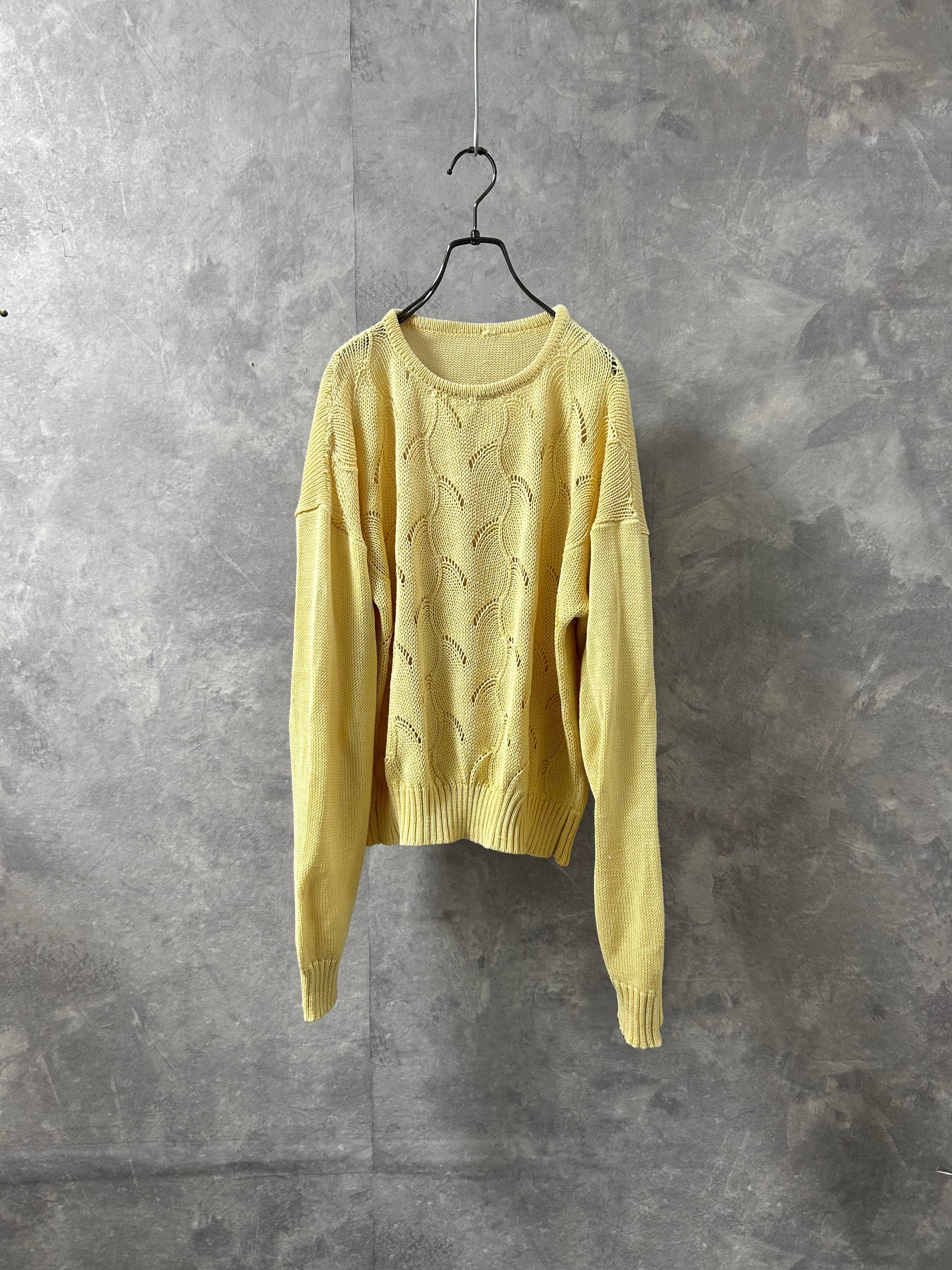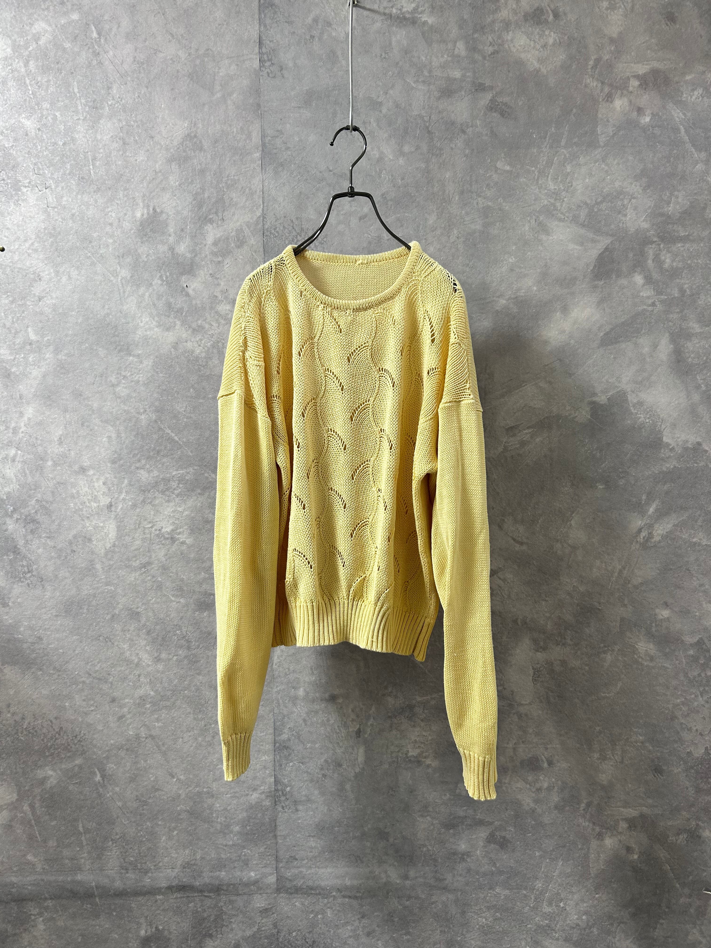 Wave Knit Light Yellow Sweater【古着】