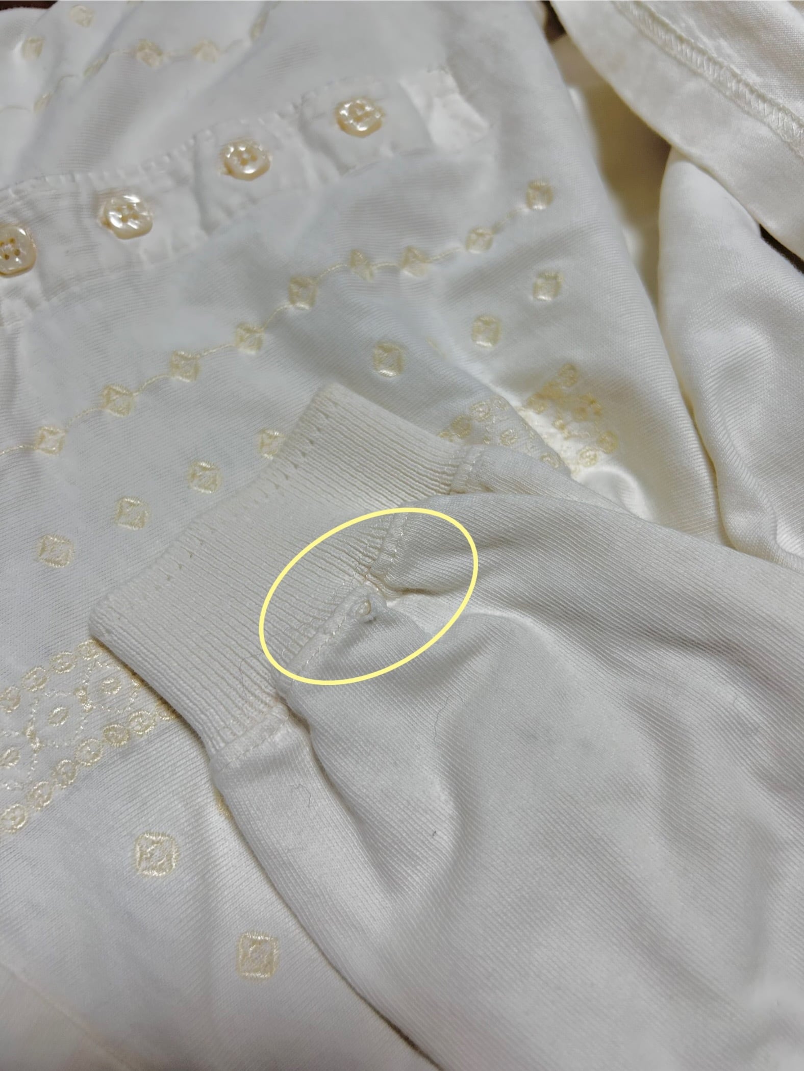※袖部分に薄めのシミ・小さな穴あり